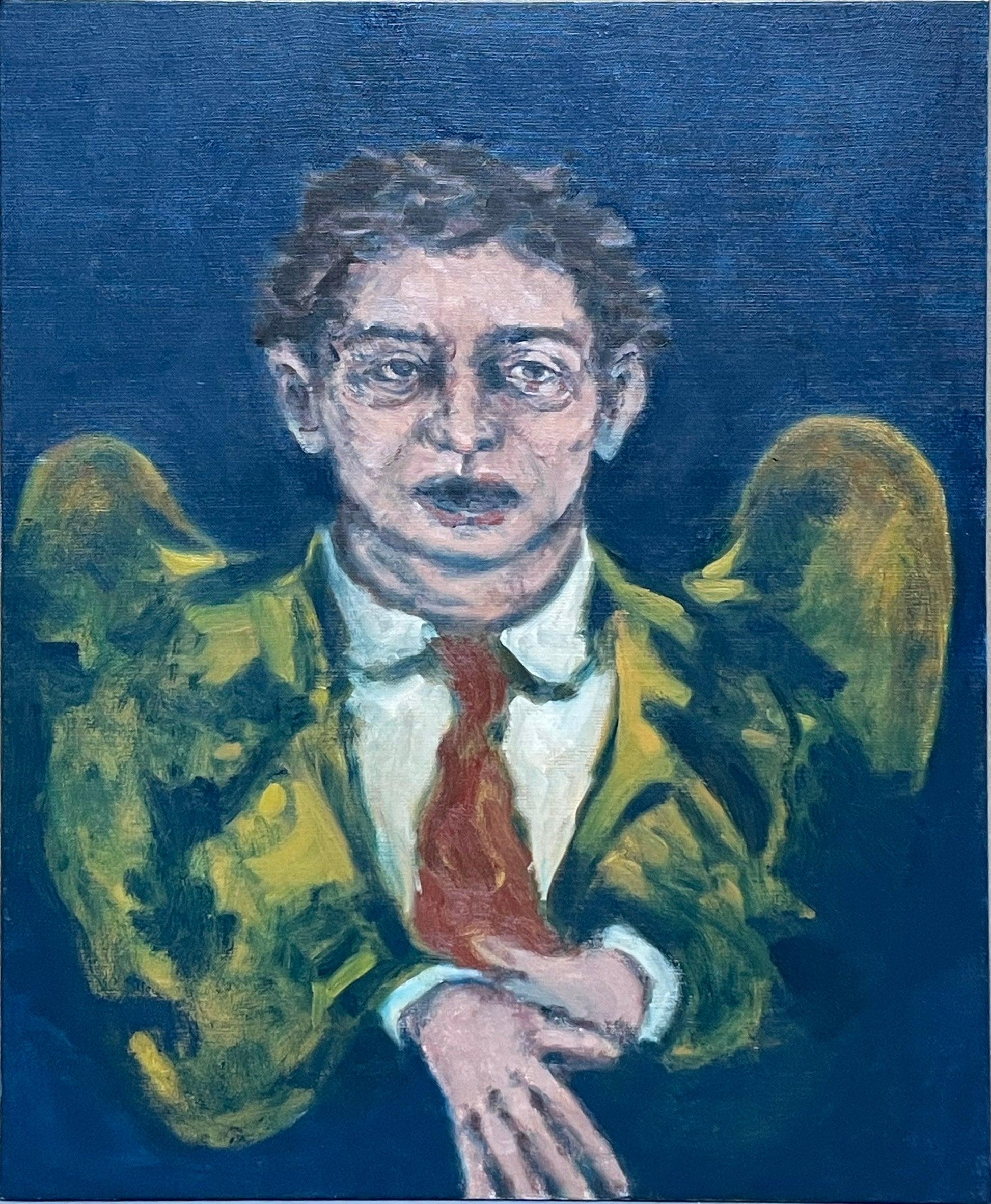 Félix Deschamps Mak was born in 1996 in Paris. He graduated from Ecole des Beaux-Arts de Paris in 2021 and had the opportunity to make a school exchange at Repine Institute in Saint- Petersburg. Aside from painting, he is used to producing theater scenery, which nourish his approach of space and presence. After his first solo show at Galerie Lazarew in 2022, he got admitted to prestigious Casa de Velázquez (Académie de France in Madrid), for their 2022-2023 residency.