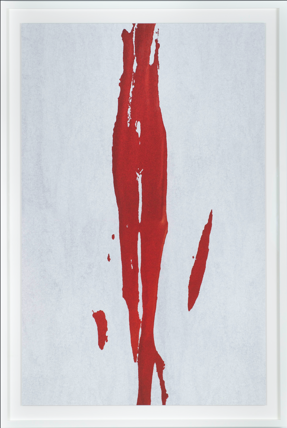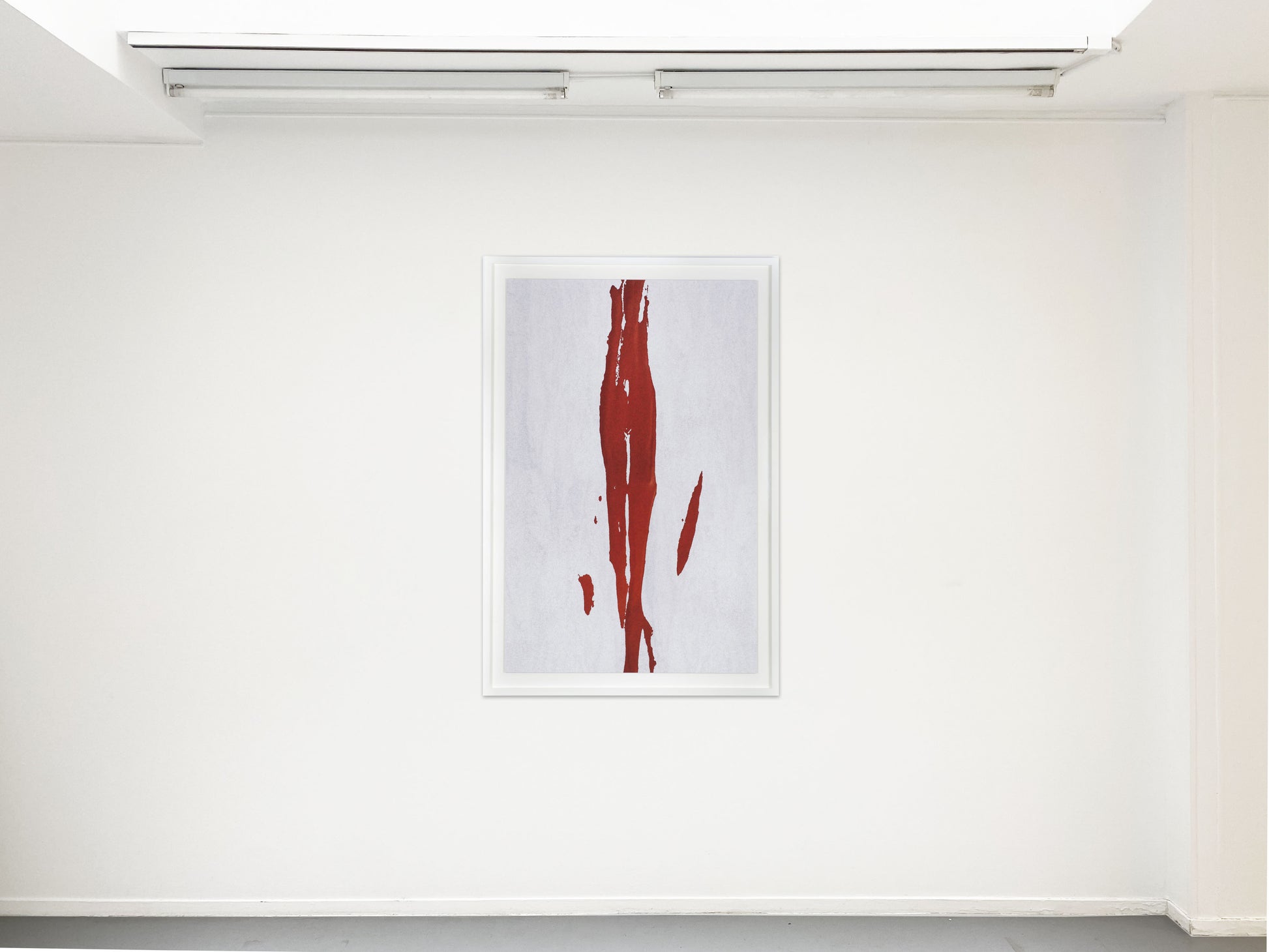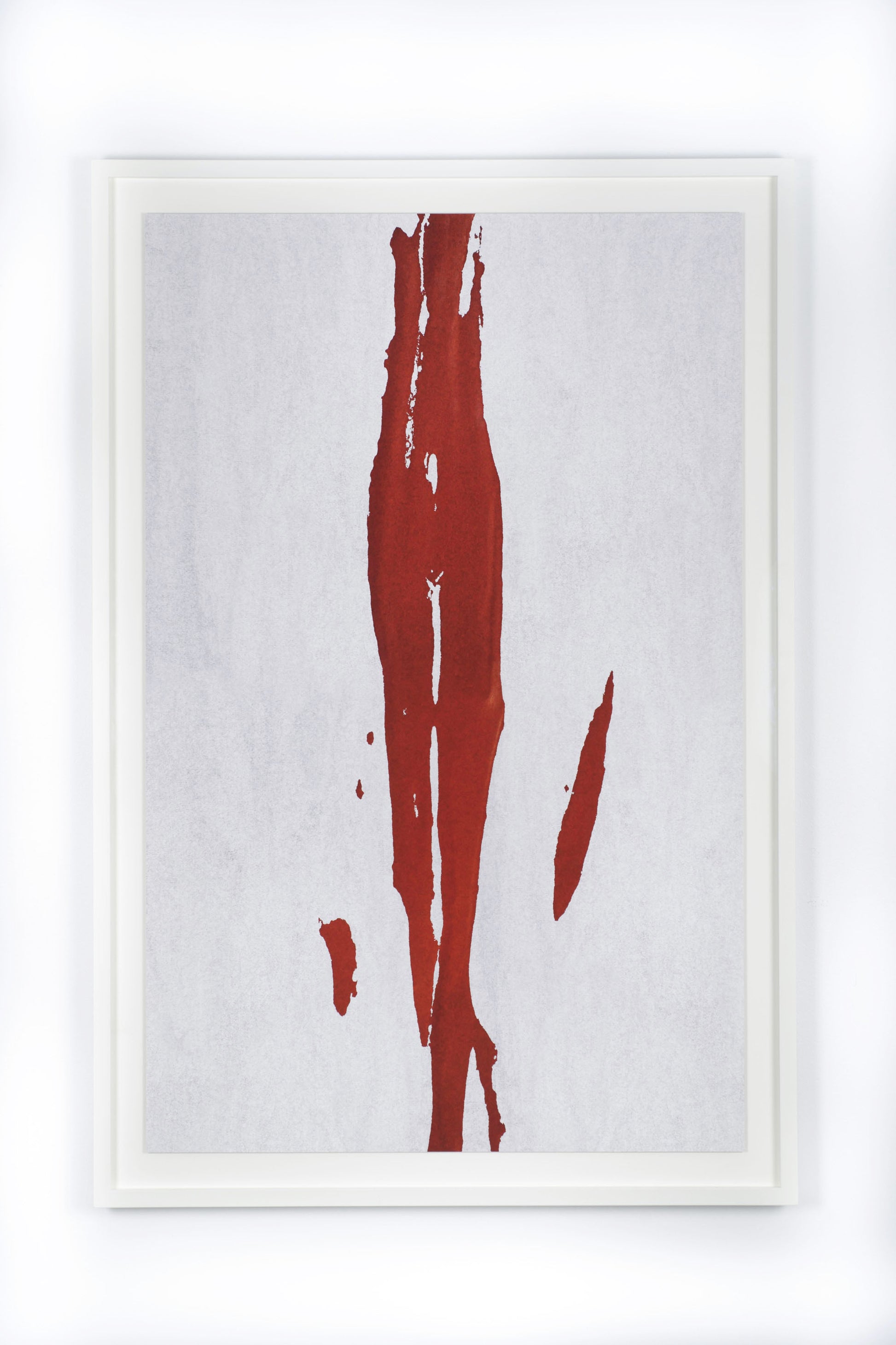 Montage tirage «suspendu»: moulure laquée blanc musée 24/48 mm / verre antireflets / isolateur 20 mm / fond blanc (visible 6 cm) / chassis