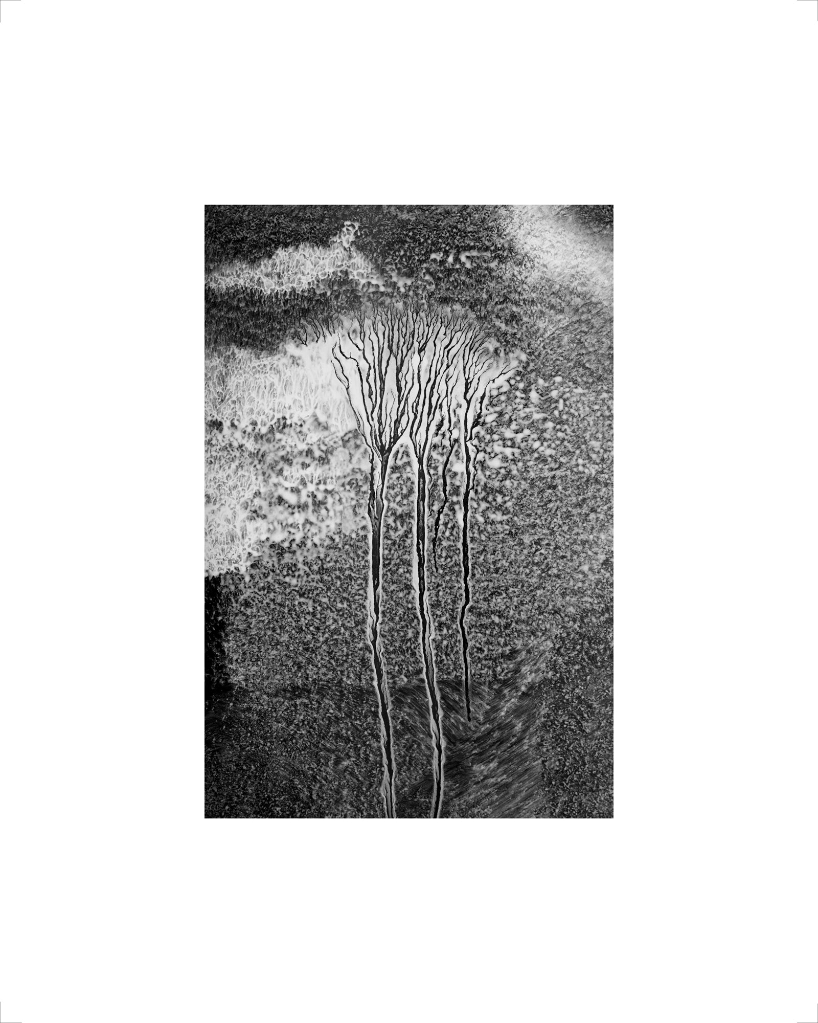 De plus, une technique de prélèvement photographique hors du commun et la qualité exceptionnelle des impressions pigmentaires (studio Franck Bordas) et des gravures (atelier Helio’g ) qui composent l’exposition, contribuent à brouiller les pistes : reproduction d’un dessin, peinture, matière, photographie ou hallucination, que voit-on ?