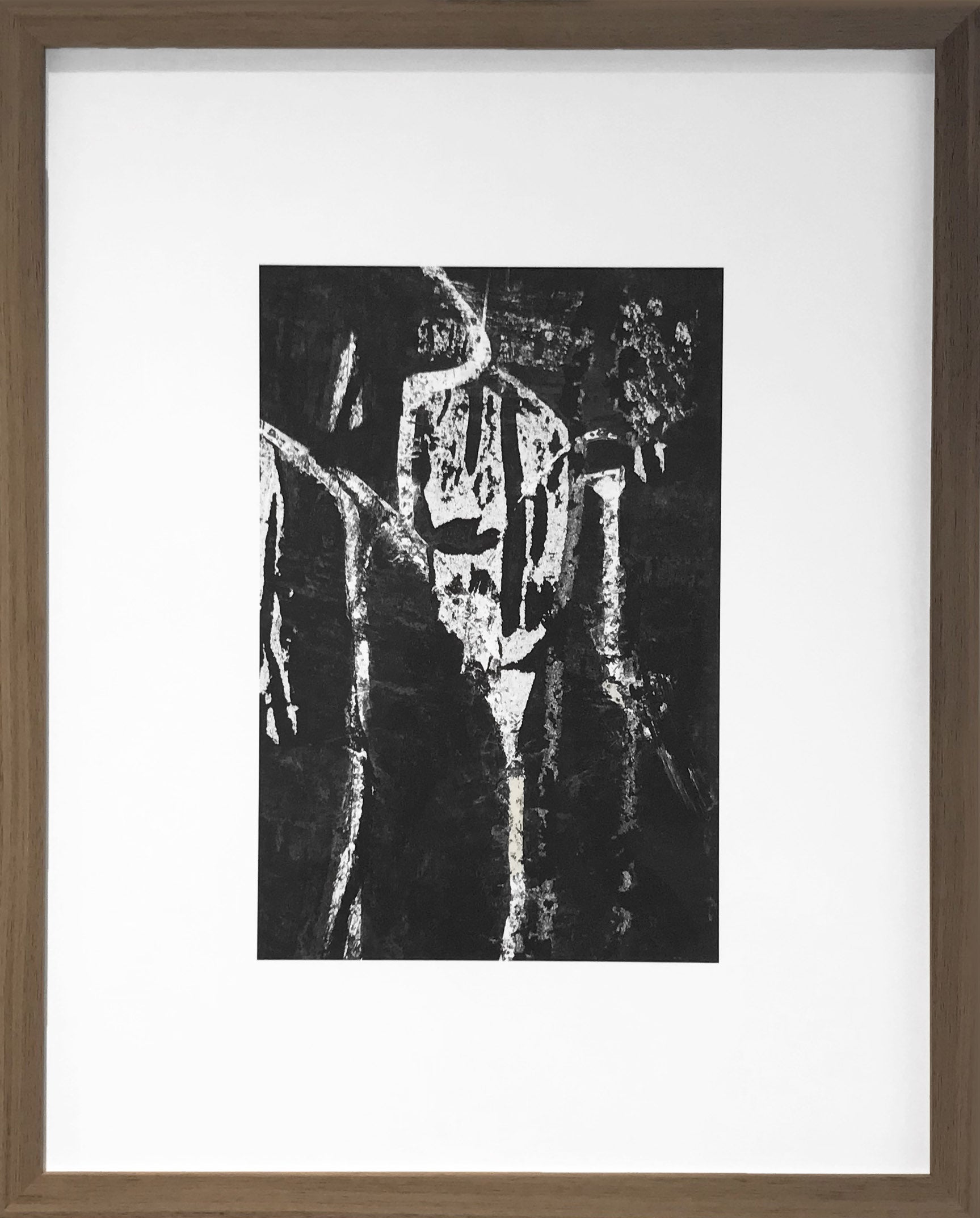 Montage au format : moulure noyer 20/40 mm / verre antireflets / isolateur 5 mm / chassis