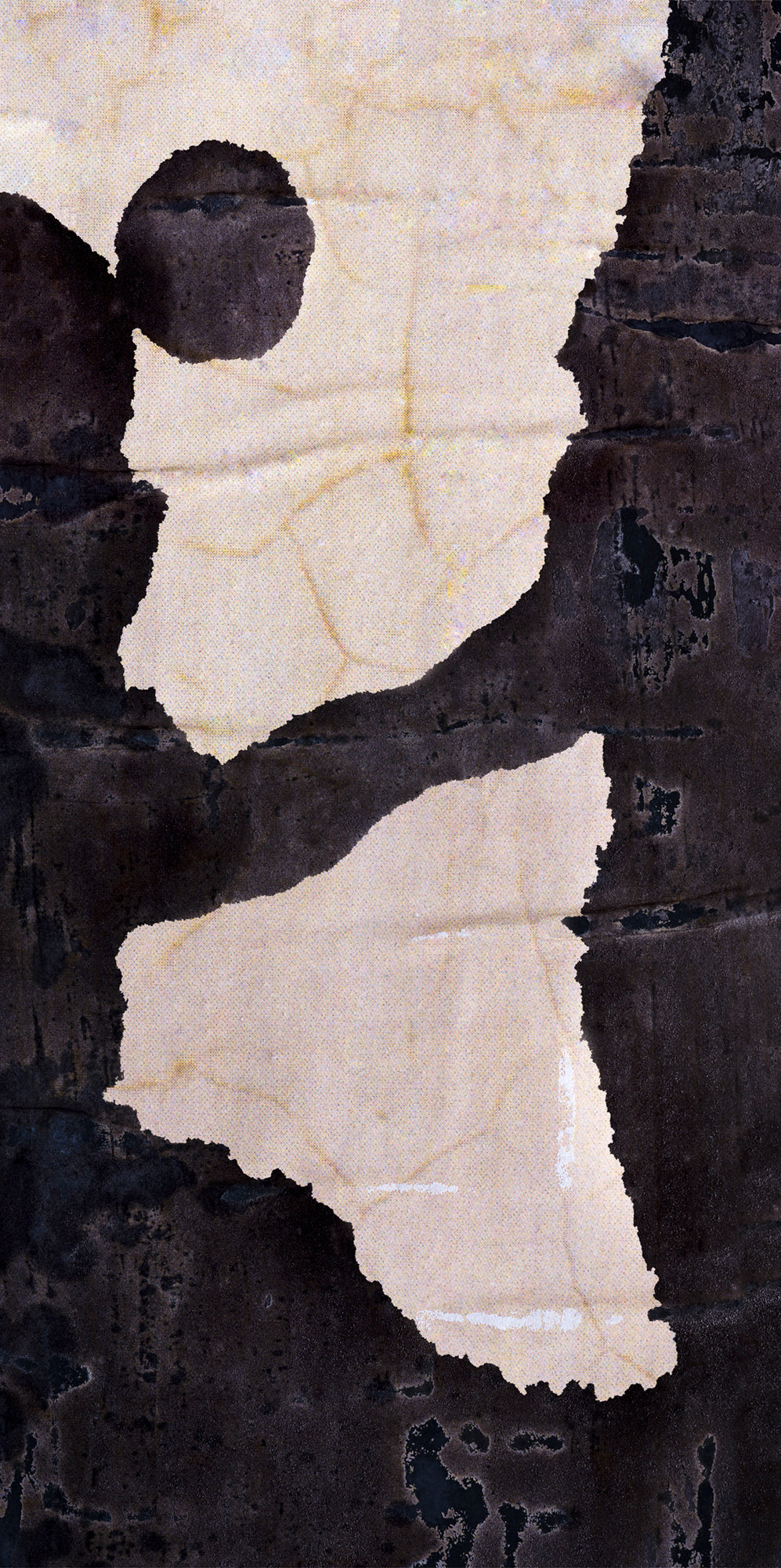 Que ce soit dans les couches successives d’affichages publicitaires entamant leur processus de disparition, ou dans les traces et ruissellements de toutes natures, il guette le moment où, dans l’épaisseur des temps accolés, adviendra une apparition.