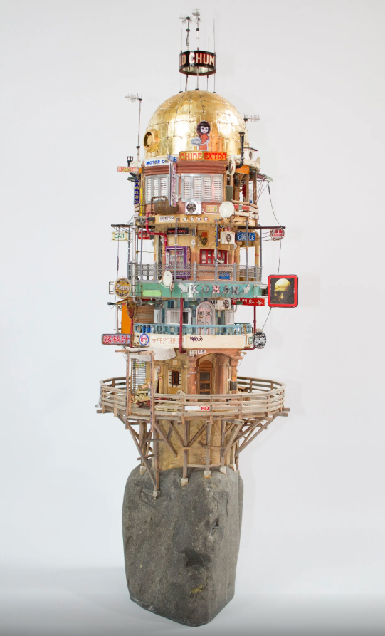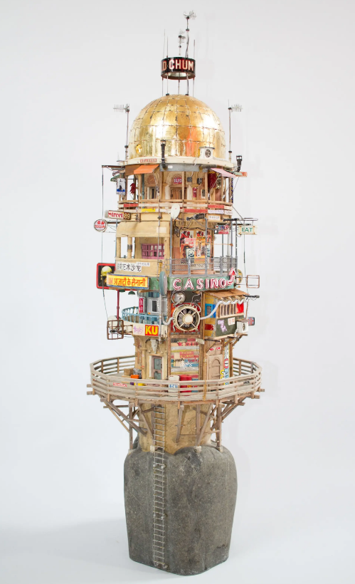 Les sculptures de Charles Malherbe sont des récifs isolés sur lesquels se serait aggloméré une sorte de patchwork architectural, refuges improbables marqués par le temps qui passe et les multiples remaniements des communautés qui les habitent. D’autres sont telles des stations d’observation, reliques de civilisations récemment collapsées.