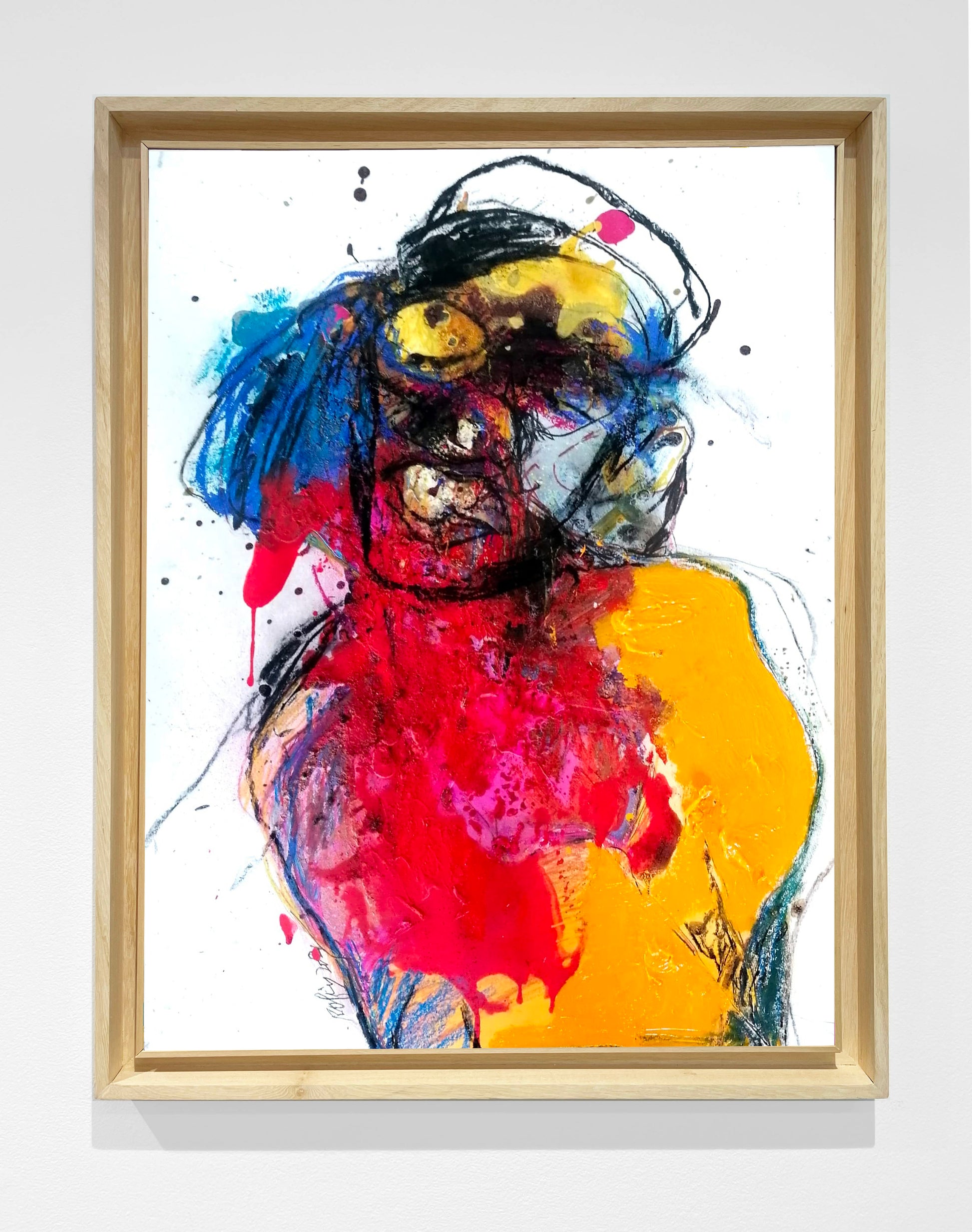 Rafiy's painting is populated with faces, symbols, signs and Decline as a partition of shapes and colors. It mixes materials Modest ones such as coffee grounds or rust to more traditional materials such as Oil or crude pigments. Powerful and aesthetic, his painting is none the less loaded with social content. Rafiy says working in "the noise of the world". Very influenced by the actuality, he conceives his production as a way to put order in the chaos of the real, to fight against the oblivion, to keep in memory.