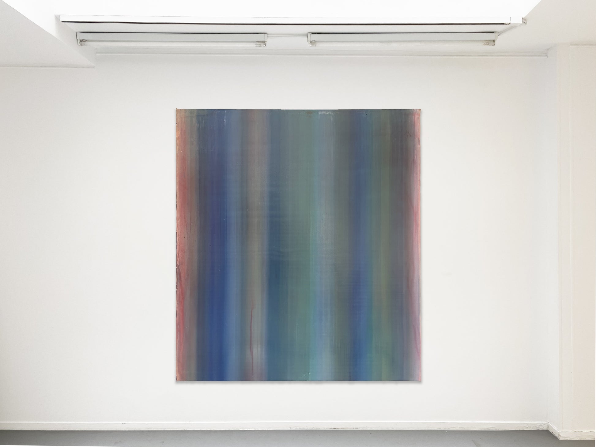 Faisant partie de la série Between The Lines, Aharon Gluska réalise des grandes toiles résultantes de l'accumulation de 50 ou 60 couches de couleurs étalées sur toile par des larges racloirs et grattées à la truelle, qui traduisent une réflexion profonde sur la mémoire.
