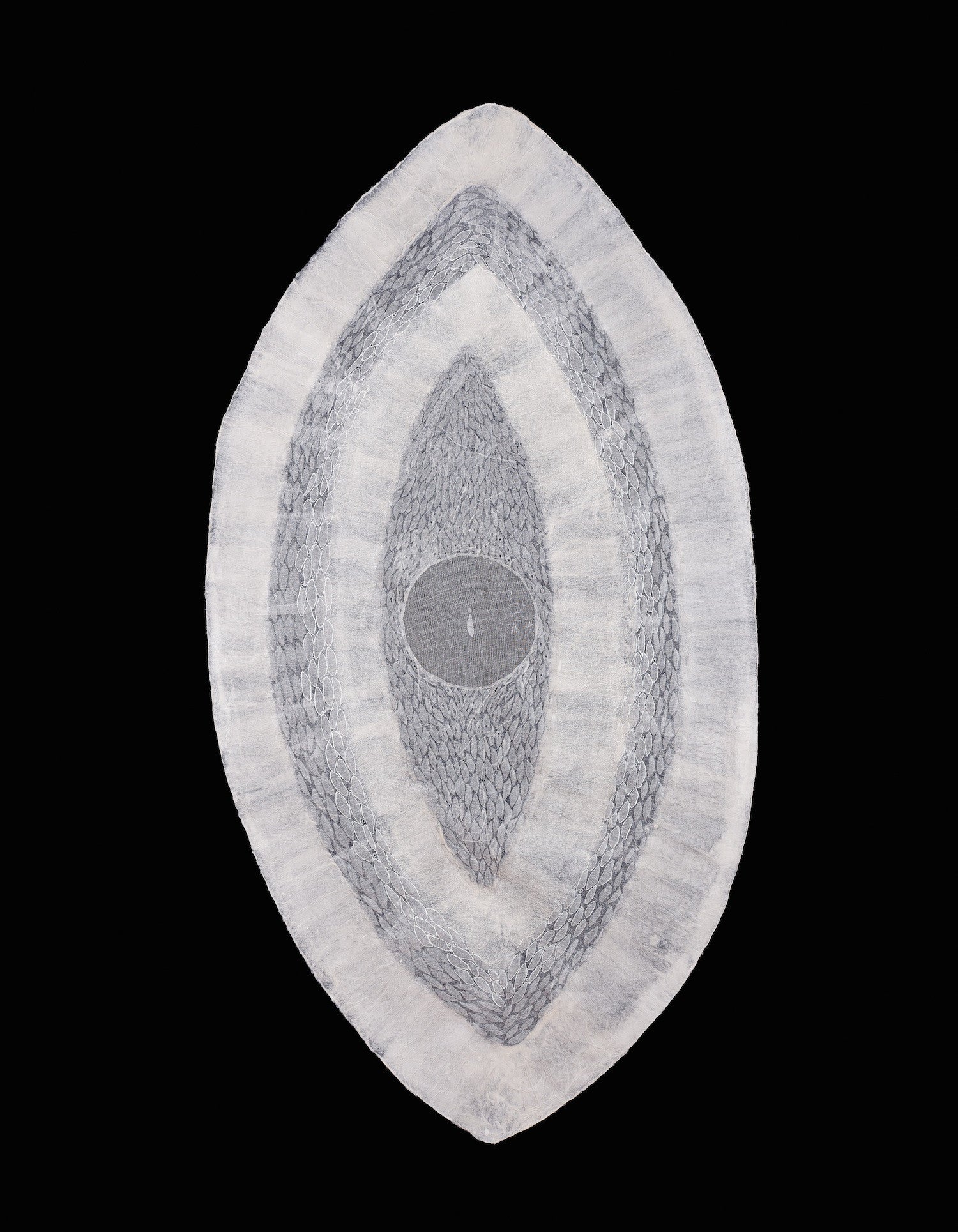 Isabel ESPINOZA - who has also studied anthropology - has always worked on the issue of identity. The series Metafora de los Escudos (Metaphor of the Shields) talks about individual identity. The large shields of transparent paper, which she realizes herself with plant fibers in Ecuador, are at the same time symbols of pride and fragility: an identity that needs to be cared of.