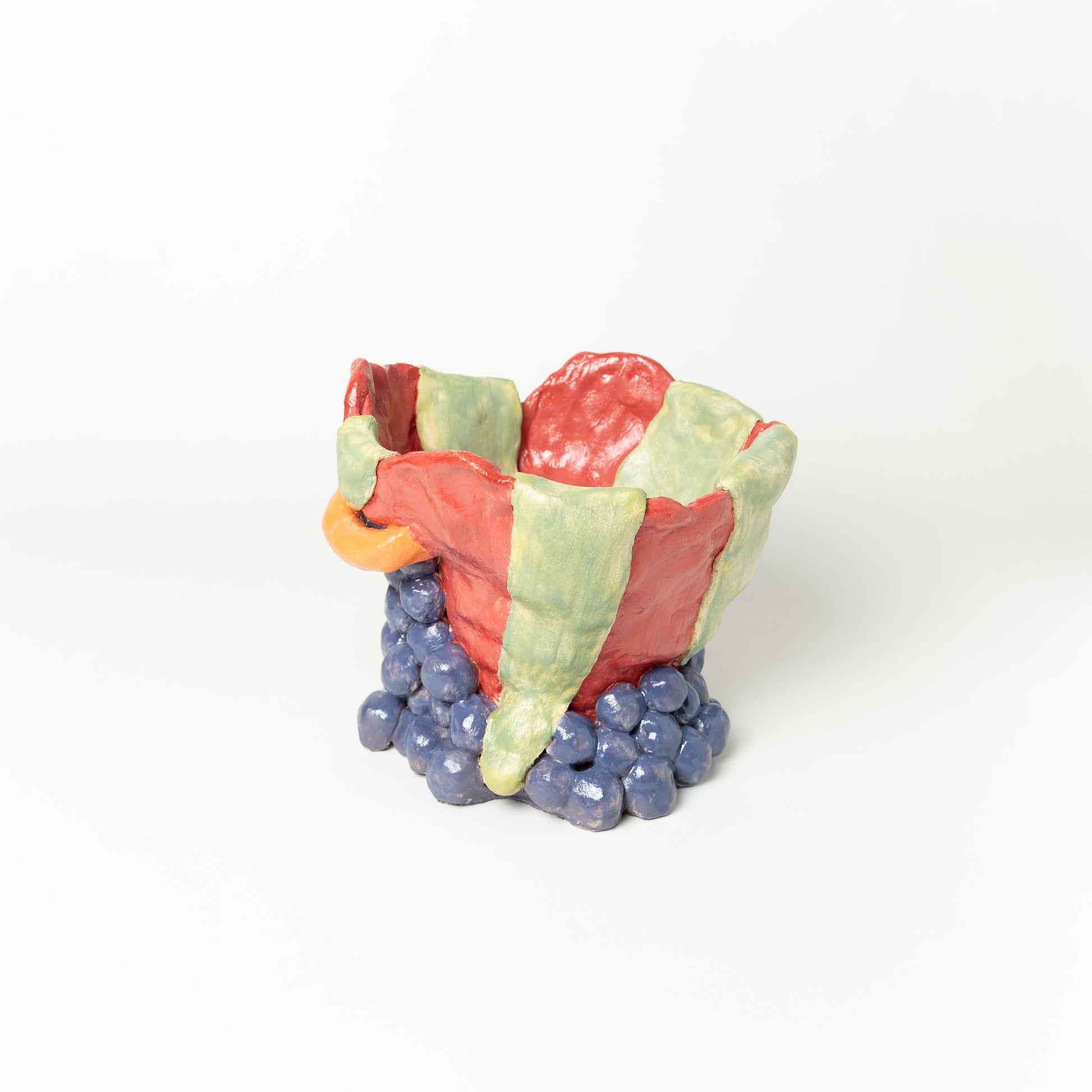colorful plates display the remains of a shared feast. There, breasts emerge under an arrangement of bananas, where a garland remains hanging. Soraia Sü's playful and instinctive universe is overflowing and makes you want to start partying again…